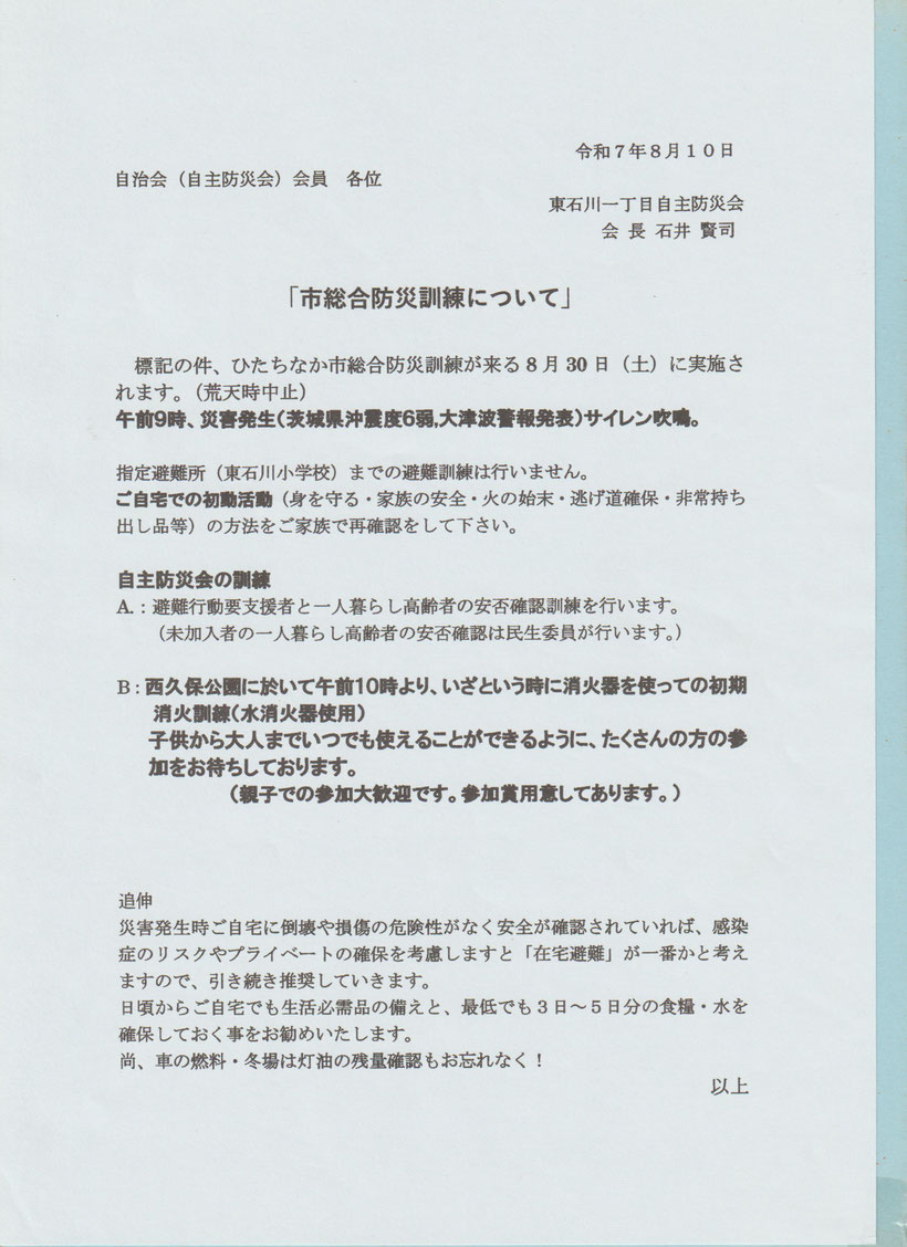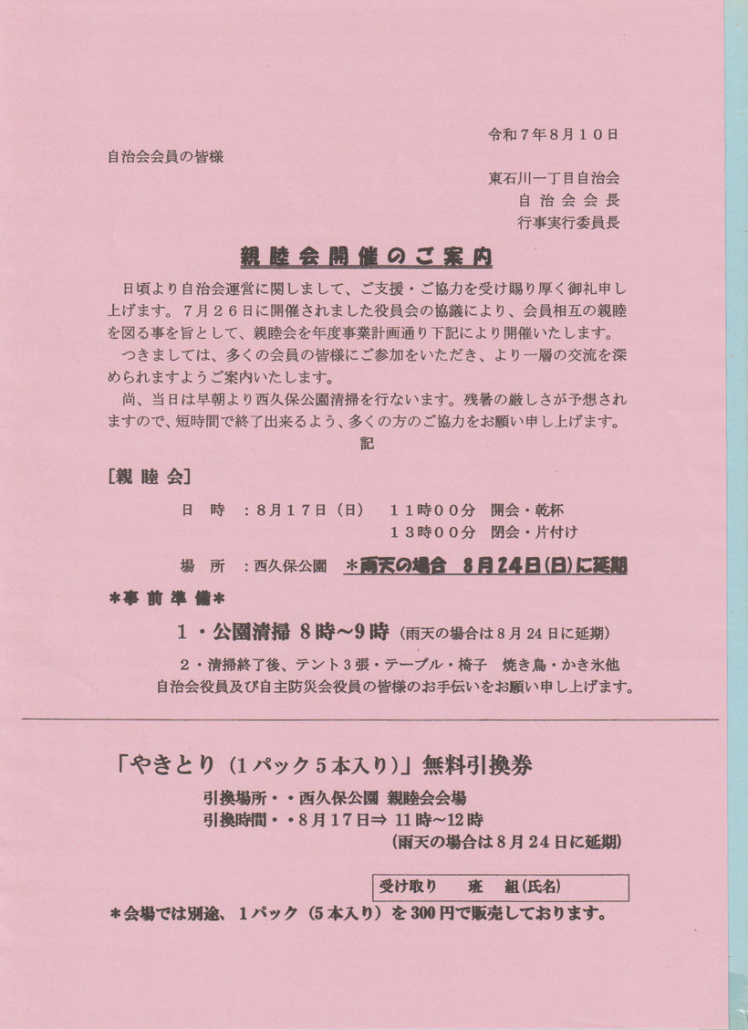 皆様の積極的なご参加とご支援をよろしくお願いいたします。 8/10自治会長